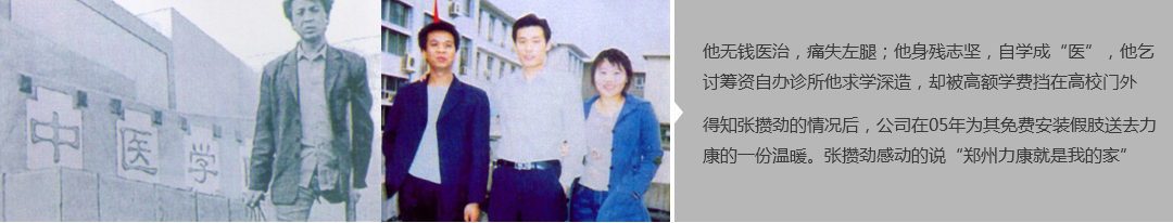 鄭州市力康假肢矯形器有限公司(簡稱力康),是一家專業(yè)從事假肢矯形器的設(shè)計(jì)、研發(fā)、制作及裝 配的專業(yè)機(jī)構(gòu)。成立于1992年是河南省唯一一家福利企業(yè)。力康下設(shè)業(yè)務(wù)部、技術(shù)部、住院部、康復(fù) 部、售后服務(wù)部,并配有現(xiàn)代化的裝配車間和功能齊全的訓(xùn)練大廳,為殘疾朋友康復(fù)訓(xùn)練提供了可靠 保障。總經(jīng)理穿戴假肢多年,有著豐富的臨床經(jīng)驗(yàn)和親身體會;多年來,力康已為全國幾十萬名殘疾 朋友安裝上舒適、美觀、耐用的假肢和矯形器具,使他們更大限度地恢復(fù)了正常的工作和生活。“產(chǎn) 品即人品”的質(zhì)量理念、先進(jìn)的技術(shù)、實(shí)惠的價(jià)格、完善的售后服務(wù)是力康取勝的法寶……